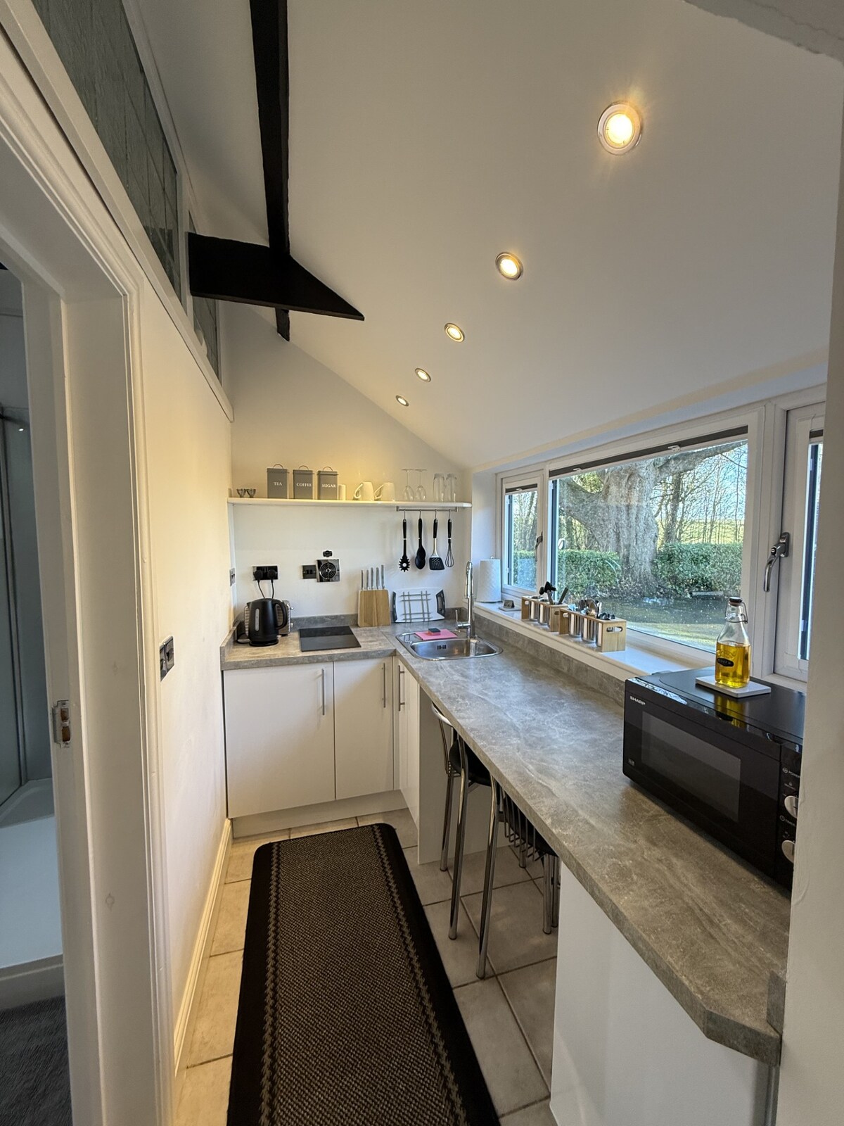 Azoteas situadas en el centro de Louth. Ha sido renovado y ofrece alojamiento de lujo para 2 personas. En la planta baja hay un dormitorio grande con cama tamaño king y un baño con ducha. Suba por la elegante escalera hasta el salón/comedor y la pequeña, pero totalmente equipada, cocina americana. Wifi de fibra, TV inteligente y Blue Ray ofrecen muchas opciones de entretenimiento. La vista a través de los tejados de las casas hasta la icónica Iglesia de St James mientras comes es genial durante el día e impresionante por la noche.