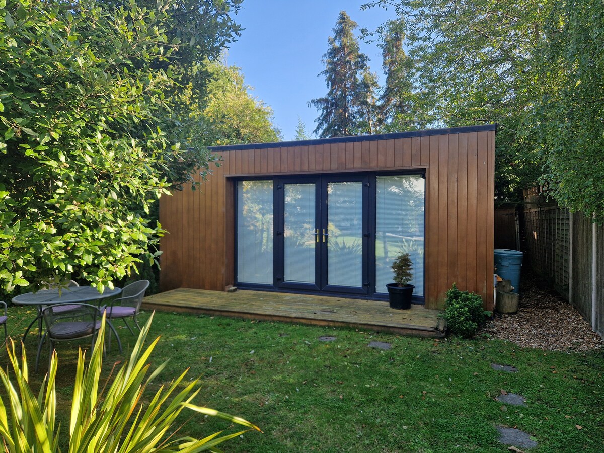 Anexo independiente bellamente decorado y elegante en el sur de Cambridge, con dormitorio y sala de estar (incluida la cocina), además de un baño independiente. Para darte total independencia, el anexo tiene acceso independiente desde la casa principal más aparcamiento fuera de la carretera. Tendrás acceso al jardín familiar que tiene unas vistas impresionantes. Te sentirás como si estuvieras en un tranquilo escondite rural, pero también estarás muy bien situado para acceder al centro de Cambridge, al hospital Addenbrookes y a los campus Genome y Babraham.