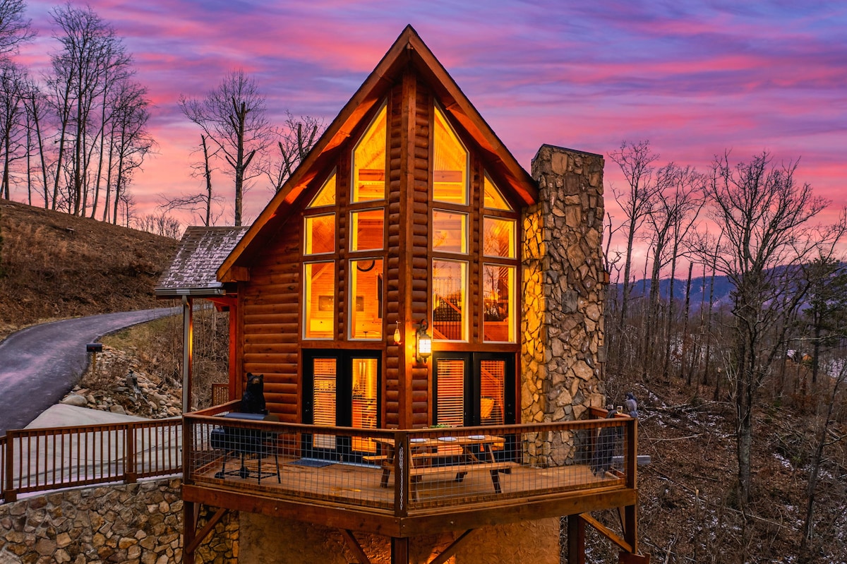 Elevated Cabin Luxury with Smoky Mountain View!