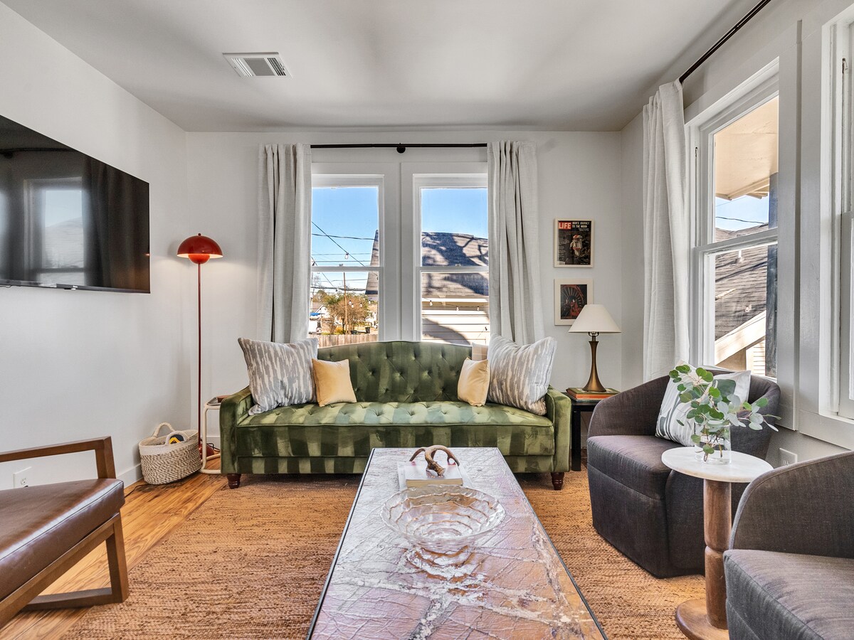 Featured on the 2026 Heights Home Tour - Enchantment awaits along tree-lined streets in this beautifully redesigned 2-story Craftsman guest house. This spacious 1,000 sqft private retreat offers an updated kitchen, 2 bathrooms, and comfortable living for up to 4 guests. Tucked in the heart of Woodland Heights, walk to parks, coffee shops, and local favorite restaurants. Just 2 miles from Downtown and minutes to the Medical Center - an ideal blend of timeless charm, privacy, and convenience.