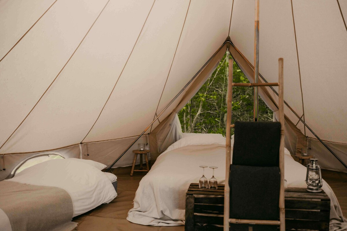 I Falkeröds lummiga grönområden hittar du vårt Tent hotel Njut av Falkeröds naturreservat när du sover i ett av våra fyra glampingtält Tältet på 20 kvadratmeter står uppställt på varsitt trädäck och är inredda med exklusiva hotellsängar, inglasad vedeldad kamin och rofylld dekoration Vakna upp till fåglarnas kvitter medan morgonsolen dansar över tältduken. Frukost köper du i vårt trädgårdscafé Se öppettider för Ladan och kafét på hemsidan Är tältet fullbokat? Vi har tre tält till på Airbnb!