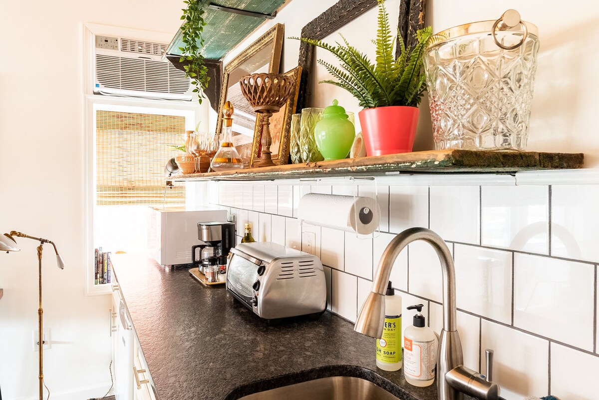 Antigua tienda de cómics y tarjetas de béisbol en la calle principal de Pennsburg, renovada para convertirla en un refugio de mediados de siglo. Cama tamaño queen, baño completo y cocina americana con encimeras de piedra. Entrada privada con código de llave en la parte delantera. El patio trasero rodeado de una valla blanca es perfecto para sentarse en los días cálidos. A poca distancia a pie de restaurantes y tiendas de comestibles. Aparcamiento en la calle. La unidad está en la calle principal, por lo que hay ruido de tráfico. Pedimos a los huéspedes que sean respetuosos con los inquilinos permanentes del edificio.