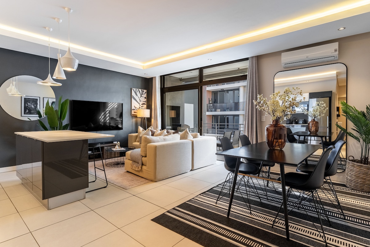 Este apartamento de diseño de lujo de 2 dormitorios y 2 baños en el corazón de Green Point ofrece vistas mágicas de Signal Hill y del estadio de Green Point. Está muy cerca del paseo marítimo, V&A Waterfront, algunas de las mejores playas de Ciudad del Cabo, las mejores cafeterías, bares y restaurantes. El apartamento tiene acceso a una zona de entretenimiento común con piscina en la azotea y barbacoa que cuenta con vistas mágicas de 360 grados. El bloque de apartamentos tiene un inversor para áreas comunes, seguridad las 24 horas y una plaza de aparcamiento subterráneo.
