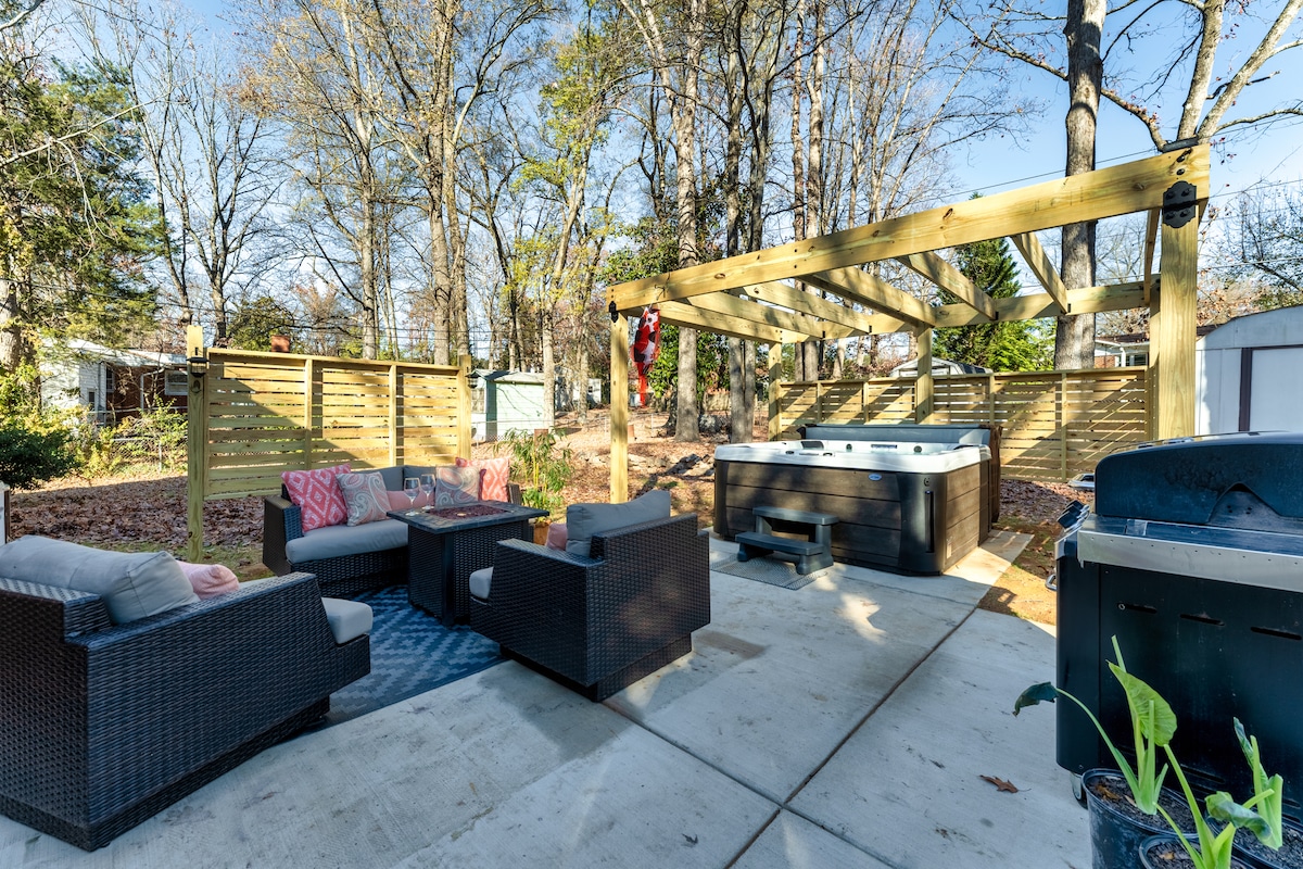 Let The Refuge take care of you this spring... Enjoy the walkable neighborhood. Relax in our claw foot tub, or stretch out with a book & tall glass of iced tea in the back yard. Watch the sunset from the front porch with a mint julep in hand. Fully fenced back yard oasis with grill to hang with your fur babies. Close to it all. Hit the refresh button on your life at The Refuge! UNCG: 1 min GAC/Coliseum: 4 min Downtown: 5 min Cone Hospital: 7 min NC A&T: 9 min HP Furniture Market: 24 min