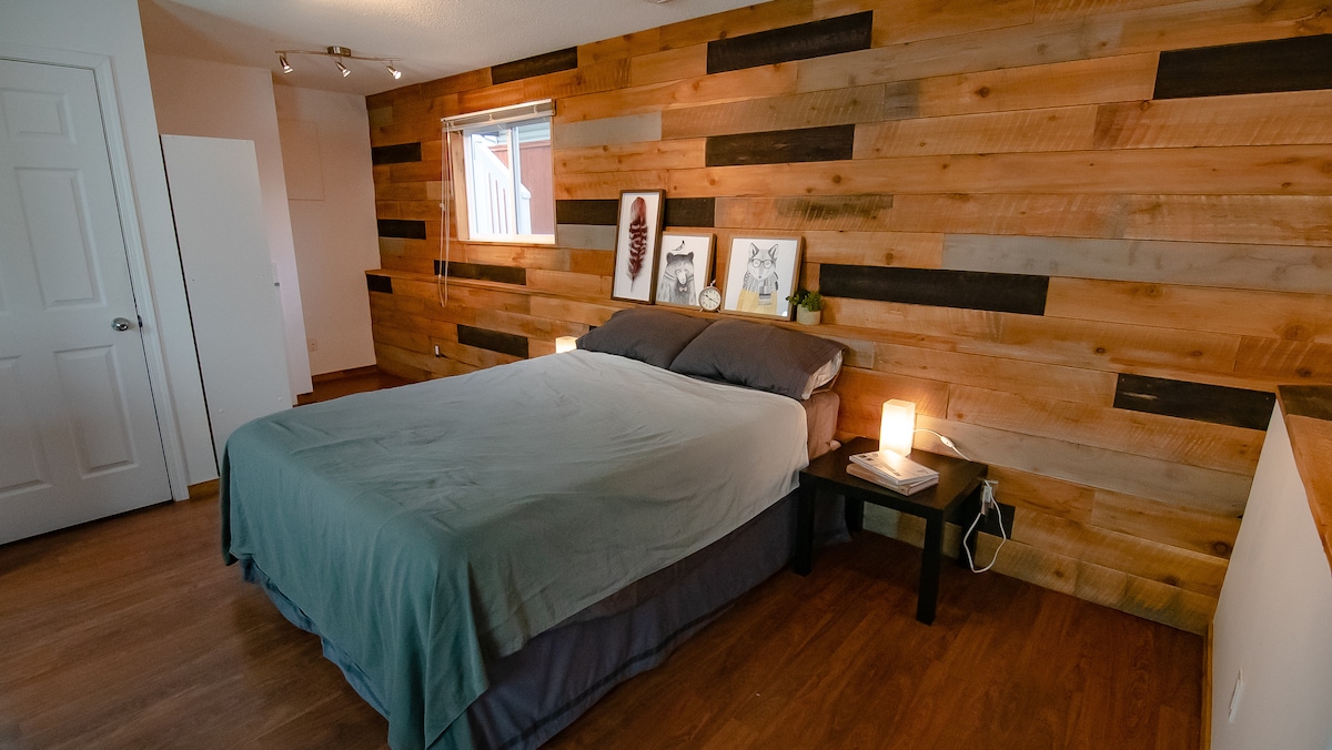 Unwind in our spacious private hot tub after a day of shopping, sightseeing, or skiing! Sage Haven is a cozy, clean, and quiet one-bedroom suite, perfectly located just 5 minutes away from Kamloops Airport, a local shopping center, Tim Hortons, and scenic walking paths like McArthur Island Park. Designed for rest and relaxation, we value a peaceful and quiet atmosphere while ensuring your stay is comfortable. We look forward to hosting you soon! *NO partying allowed.This is a quiet neighborhood*