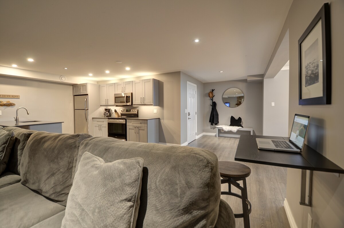 Escapate a Four Seasons Wilderness Retreat, un alojamiento acogedor en un sótano en Flesherton. Esta casa rural de tres dormitorios tiene capacidad para siete personas, con dos camas queen y una litera individual/doble. Disfrutá de una cocina totalmente equipada, chimenea a gas, TV Roku, wifi y lavadero. Afuera, relajate junto al brasero (leña incluida) o a la parrilla en el patio. Los lagos cercanos ofrecen natación y navegación públicas. Con aire acondicionado, calefacción y un generador de respaldo, la comodidad está garantizada durante todo el año. Licencia STA: STA-2024-52-H.