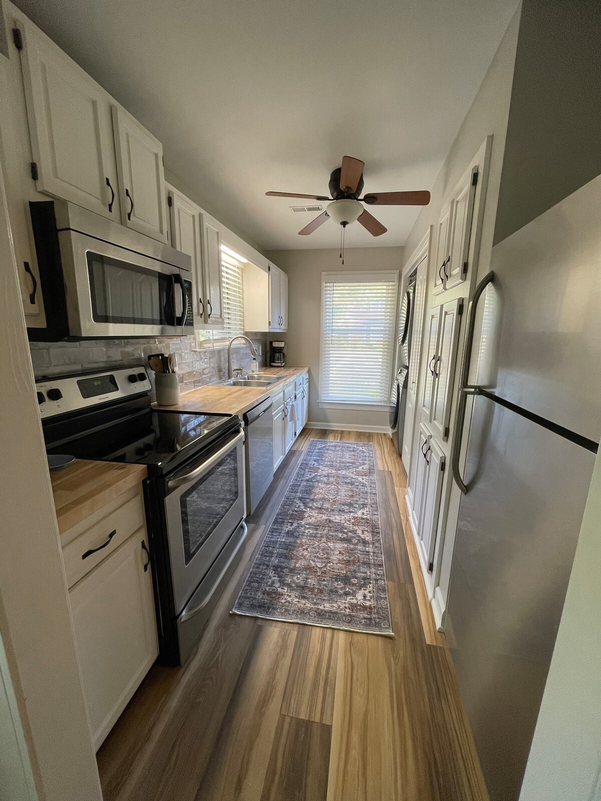 Kick back and relax in this calm, newly renovated space. Enjoy keyless entry at this stylish centrally located townhouse. Minutes from the Greenville Convention Center, East Carolina University, Vidant Medical Center, shopping and dining. With two queen beds, there's plenty of room for up to four. Whether you're in town for a game, vacation, graduation, business, traveling nurse, etc., you'll love this home. Medical Professionals, professors, corporate and long-term stays are welcome.