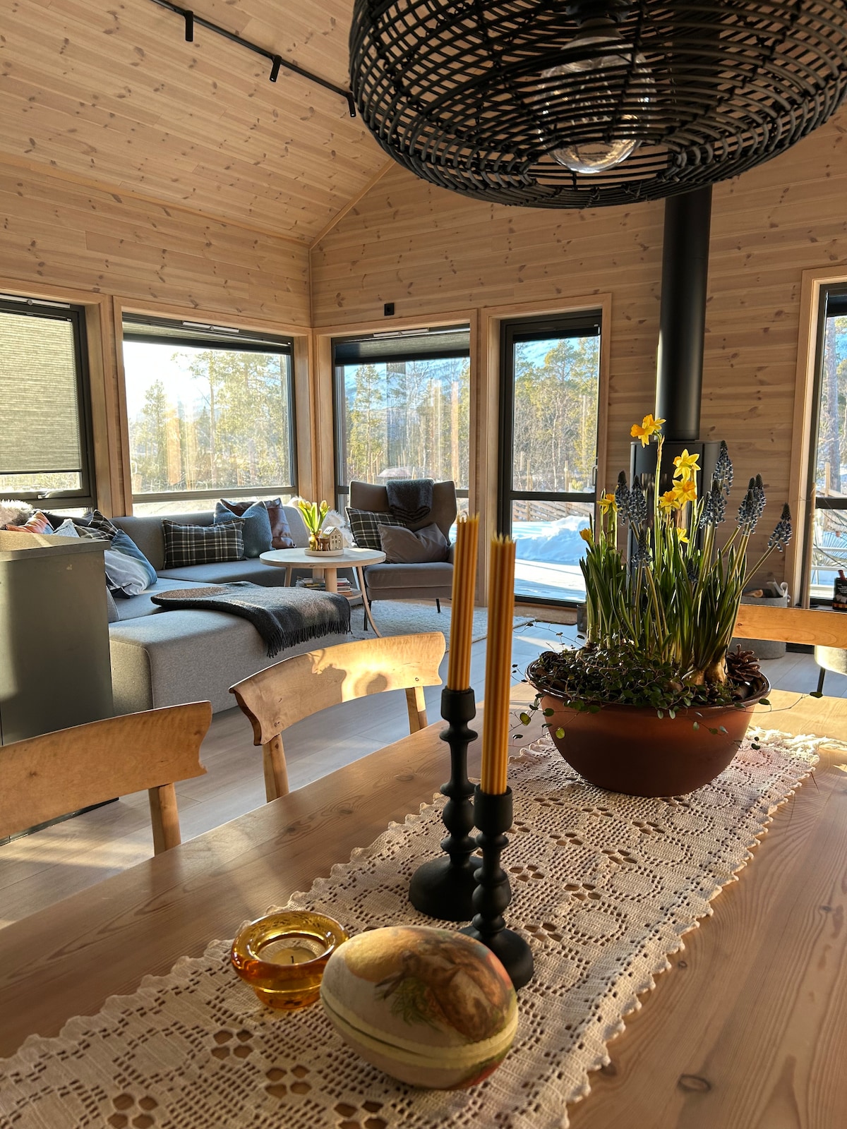 Lys og moderne hytte nær sjøen. Store panoramavinduer med fantastisk utsikt. Kjøkken med oppvaskmaskin. Følger med liten fiskebåt/robåt. Du kan fiske eller bade like nedenfor hytta. Vedfyrt badestamp(bruk må avtales,350 kr ved 1 gangs bruk,deretter 200 pr oppvarming) Sup brett leies ut kr.200 ekstra pr opphold pr. sup Hytta ligger alene på ett nes ytterst i surnadal fjorden. Check in som regel fra 15.00,men ofte mulig å sjekke inn før. 20min unna alpinsenteret Sæterlia og langrennsløyper
