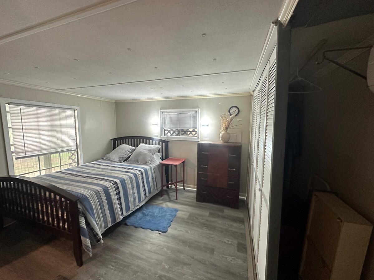 Esta cómoda casa rodante en el este de Texas tiene todas las comodidades para que te relajes o la uses como base para tus aventuras. Fácil de llegar, a 1/4 de milla de los negocios de Groveton, a 22 minutos de Trinity y cerca de muchas ciudades del este de Texas y áreas de caza y pesca. El dormitorio principal tiene cama completa, TV. La habitación principal tiene dos camas plegables, TV. La cocina tiene platos, utensilios de cocina, estufa/horno, nevera/congelador. El baño tiene ducha, inodoro, dos lavabos, toallas y artículos de tocador básicos. Aire acondicionado/calefacción. Zona de patio. ¡Te damos la bienvenida!