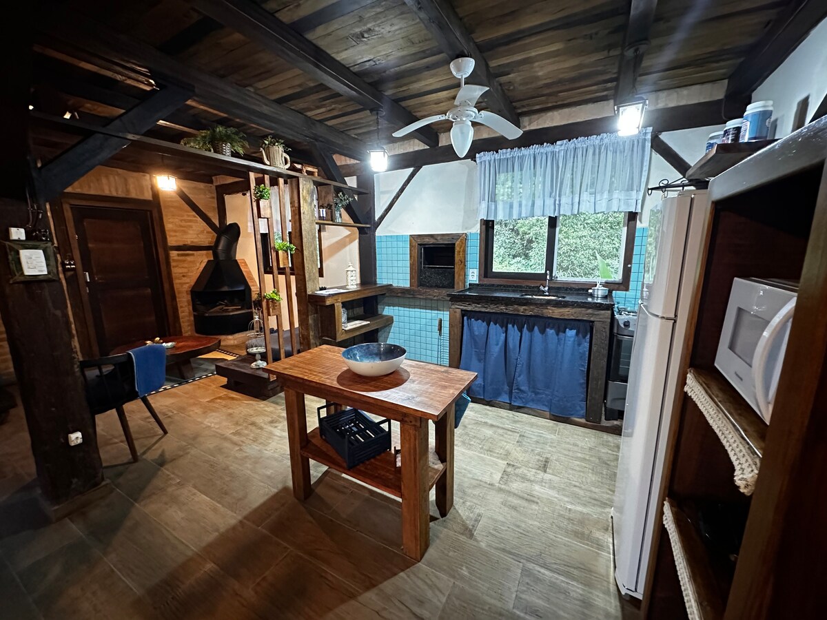 La cabaña @oranchodacolina cuenta con: Cocina totalmente equipada, microondas, horno eléctrico, licuadora, tostadora y freidora de aire. También ofrecemos artículos esenciales como sal, azúcar y aceite de oliva. La cama queen es súper cómoda con ropa de cama y toallas de primera calidad. Aire acondicionado frío y caliente, proporcionando confort térmico en cualquier época del año. Bañera de inmersión con sales de baño. Y en el baño, ducha y grifos calentados por gas con una hermosa vista a la naturaleza.