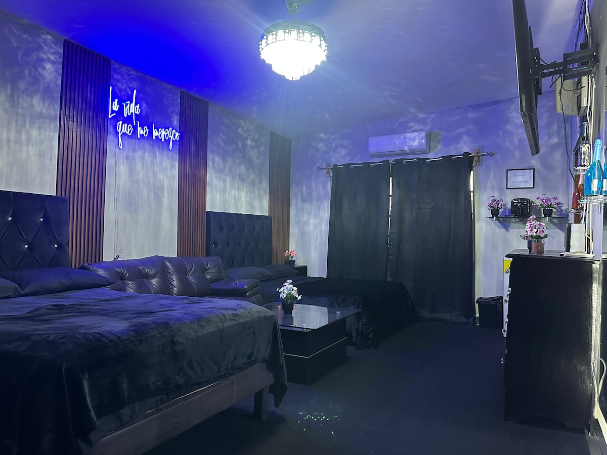Suite deluxe para adultos con jacuzzi y decoración minimalista. Estilo BDSM. Una casa completa donde se puede llegar de forma discreta y disfrutar la estancia. Cuenta con cuarto oscuro con accesorios para sesionar. *Cuarto de oficina para trabajar Home Office o cumplir tus fantasías. Seleccionar la cantidad correcta de personas al reservar ya que tiene costo a partir de 3 personas, aunque no se hospeden. Se puede dar factura fiscal.