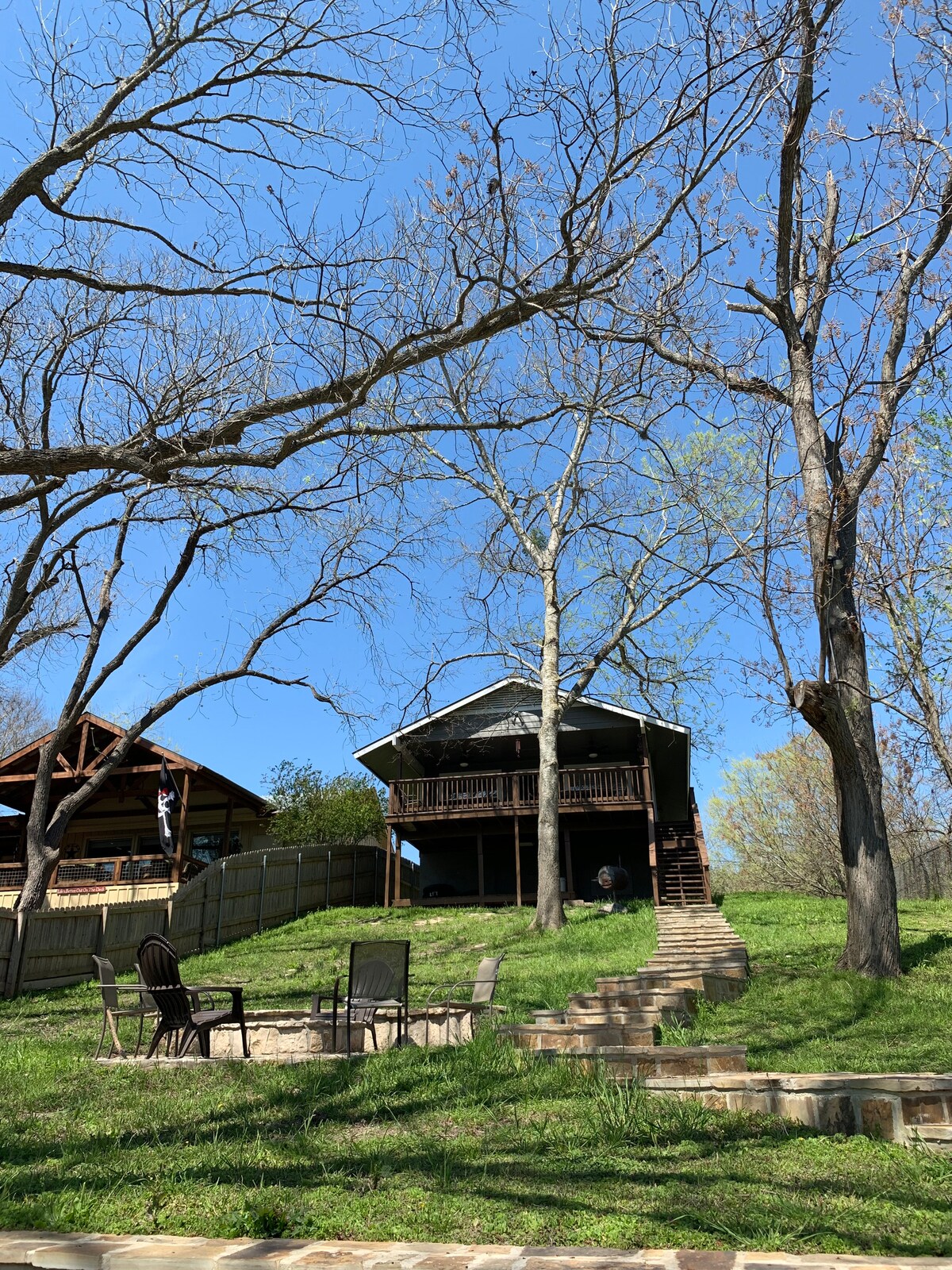 Esta encantadora cabaña de madera de 2 pisos está convenientemente ubicada en Sattler y a pocos minutos de varios servicios circundantes. ¡Perfectamente situado entre Canyon Lake y el río Guadalupe para acceder fácilmente a toda la diversión al aire libre! Un rico tema occidental se muestra en todo el espacio de 1800 pies cuadrados. Dos camas tamaño queen y baño completo residen en la planta baja, junto con una cama individual escondida debajo de las escaleras. Arriba encontrarás un loft extragrande con una cama tamaño king, cama nido, balcón privado y baño completo. No se permiten mascotas.