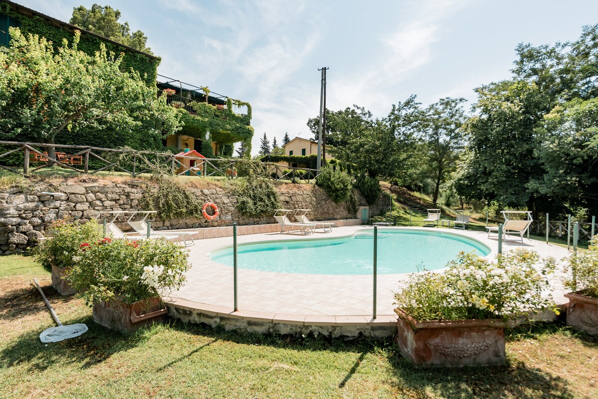 "IL PODERACCIO" es una típica casa de campo de piedra situada en las colinas que rodean el lago Trasimeno, inmersa en un hermoso bosque mediterráneo. El edificio se distribuye en dos plantas. La piscina y el jardín enmarcan el conjunto. Apertura de la piscina del 1 de mayo al 15 de octubre. Se recuerda que tras la emergencia de la COVID-19, para la limpieza y desinfección de la casa se han adoptado todas las directrices previstas por la normativa al respecto.