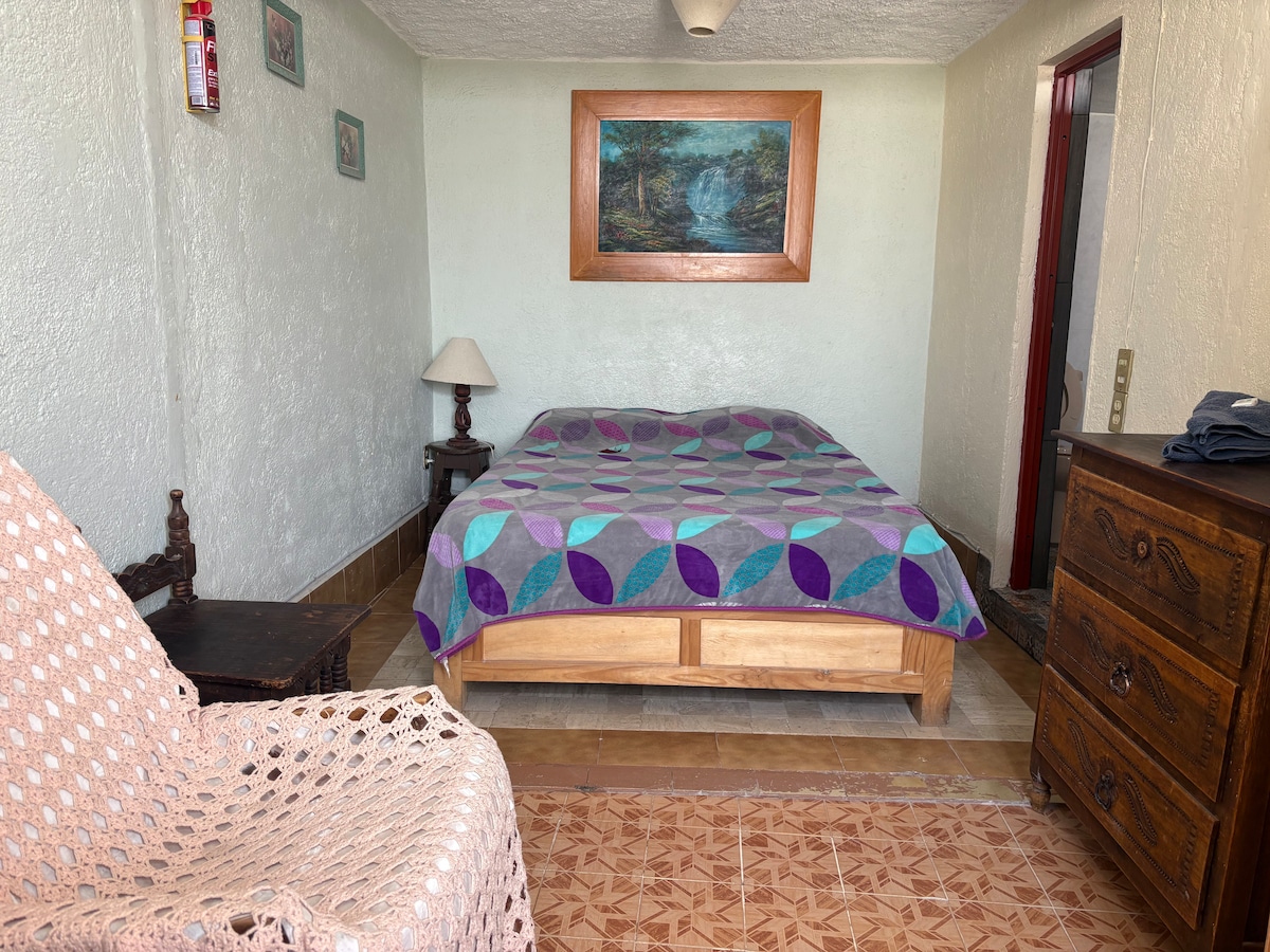 Don Quijote will look over you! This special place is close to the town center, making it easy to plan your visit. Restored in a colonial style, the apartment enjoys the sound of troubadours echoing up the callejón (Alley) in the evenings. * One block up from Calle Alonso, a street of restaurants and bars; another block and you're the Plaza de la Paz. Built in the 1700's, this apartment with its 3' thick stone and adobe walls puts you right in the middle of the Guanajuato experience.