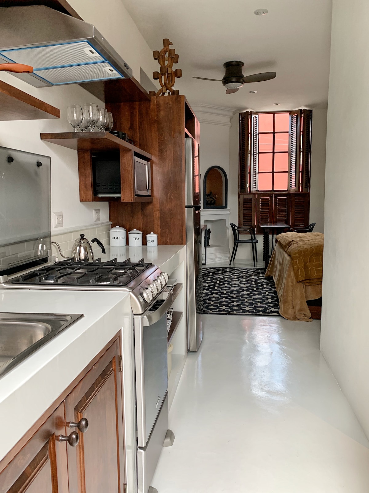 Espacio dedicado especialmente para tu comodidad y privacidad. Este mini departamento cuenta con lo necesario para que puedas descansar. Cuenta con cocina completa con refrigerador y microondas, además de enseres básicos para cocinar. INTERNET de FIBRA ÓPTICA.Tiene escritorio para trabajo, closet completo y menaje de cama.