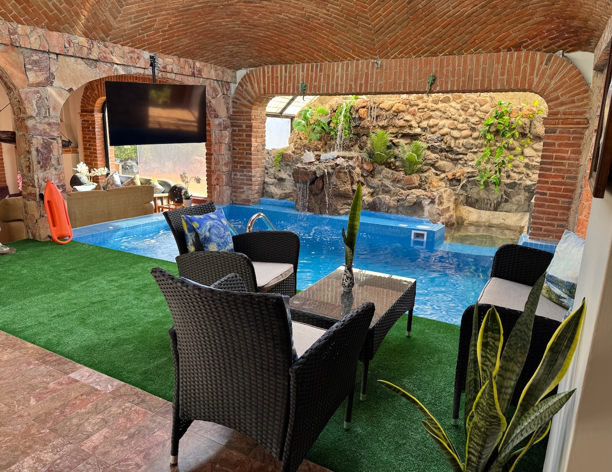 Imaginate venir a la ciudad considerada patrimonio de la humanidad y no vivir la experiencia colonial donde cada detalle fue pensado para ti hospedate dentro de la ciudad pero fuera del bullicio y la contaminacion despierta rodeado de paisajes naturales mientras tomas el desayuno en la terraza con vista a la presa Allende el reflejo del sol sobre los lirios es una maravilla exclusiva y que tal una tarde en el jacuzzi mientras se prepara un delicioso asado acompañado de vino y queso de la región