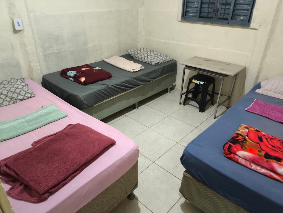 Quarto independente em um local tranquilo e bem localizado. Quarto para 01 pessoa com ventilador, banheiro privativo com blindex, televisão, wi fi, mesa para trabalho, piso com porcelanato e ambiente familiar. Próximo a supermercados, farmácias, ponto de ônibus, banco e parque da cidade.