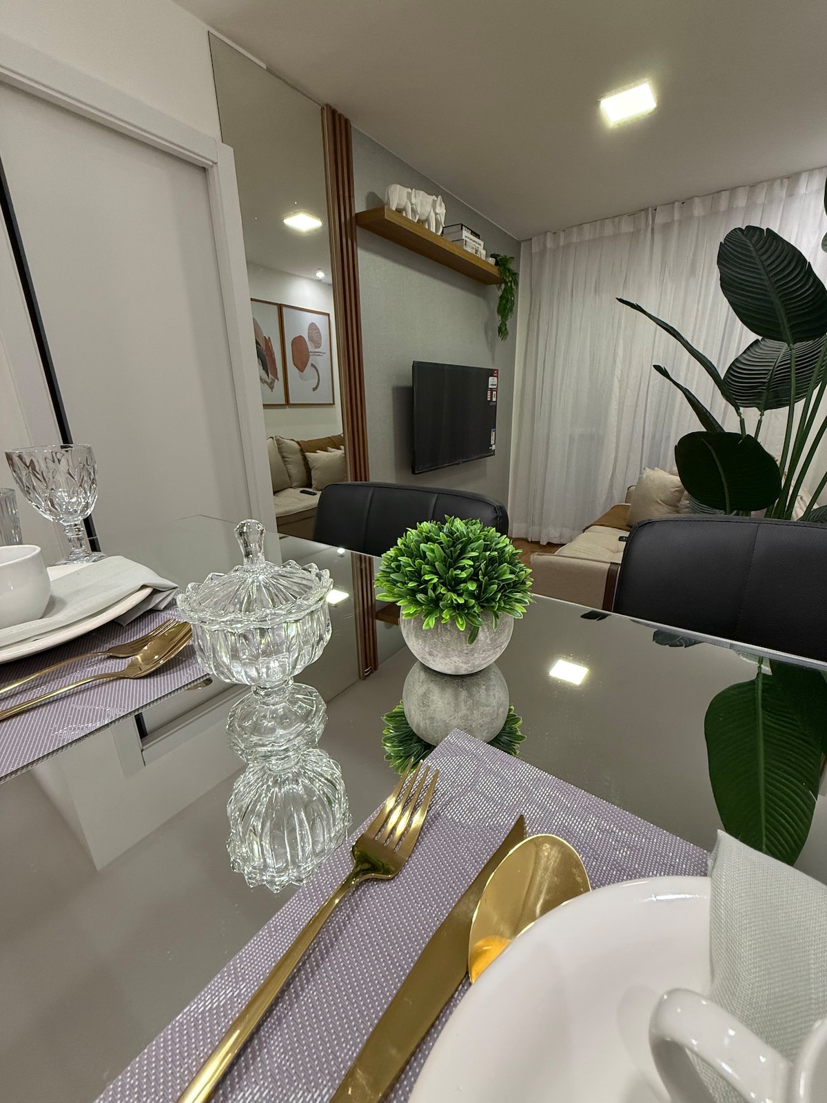Apartamento novíssimo, no centro de Guarulhos, bem localizado, próximo a mercados, restaurantes, bares, shopping center; Ar-condicionado, máquina lava&seca, forno, fogão, geladeira, utensílios domésticos, home-office, fechadura eletrônica, estacionamento grátis, piscina, sauna, academia entre outros. O apartamento tem tudo o que você precisa para uma ótima estadia para períodos curtos ou longos. O local oferece cama de casal, sofá, televisão com Netflix e PrimeVideo.