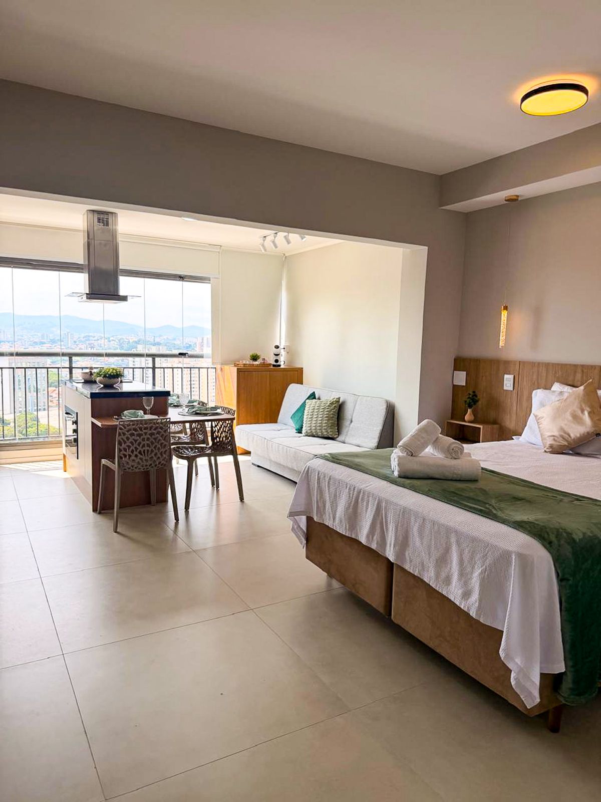 Ya sea por trabajo o por placer, la región ofrece una excelente experiencia gastronómica con centros comerciales, bares, encantadores restaurantes y un hermoso bosque que invita a la práctica de deportes. El Estudio está muy bien ubicado, a 9 km del aeropuerto de Guarulhos, cuenta con un mini centro comercial en el edificio con lavandería incluida, parrilla, gimnasio, supermercado, tiendas de servicios y algunos restaurantes y cafeterías para su comodidad.