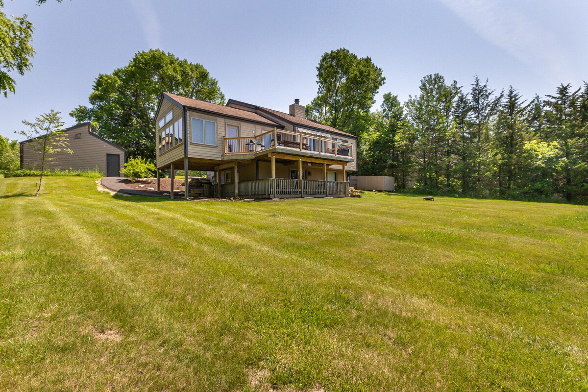 Tranquila casa de vacaciones apta para mascotas (tarifa de $ 50 por reservación) en el Territorio de Galena. 3 dormitorios, 3 baños, dos salas de estar, 2 chimeneas de madera, mosquitero en el porche, porche de nivel superior, terraza, chimenea, acceso al club del propietario (piscina, sala de ejercicios y sala de juegos), puerto deportivo y 24 millas de rutas de senderismo. Tiene capacidad para diez personas. (Asegúrate de que el número de huéspedes sea correcto cuando hagas una reservación. El número de huéspedes se puede actualizar si es necesario. Las reservaciones incorrectas se te cobrarán como tal. )