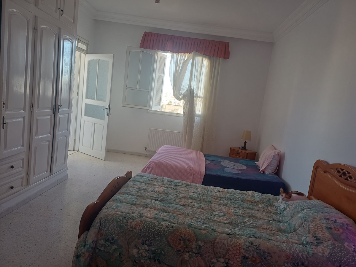El apartamento está situado en el 2º piso de un pequeño edificio, muy soleado,tranquilo y seguro . Comodidades: cerca de un supermercado, bancos, farmacias, estación de transporte público. Situado a 10 minutos a pie de la playa, la cornisa, los hoteles, las actividades acuáticas, el centro histórico de Sousse, su Medina, su zoco, sus restaurantes, etc. Viaje ligero, el apartamento está totalmente equipado, cocina ( microondas, nevera,..).