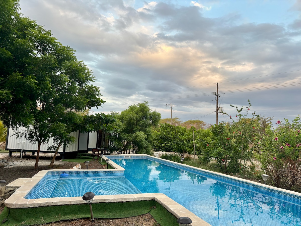 Aparta para 2 huespedes. Piscina compartida. Wi-Fi , Habitación cama full, estufa, refri, A/C, ducha caliente, balcón Container Apart, two guests; shared pool, Wi-Fi, one bedroom w/full bed, stove, refrigerator, A/C, bathroom w/hot shower, fresh and quiet forest, balcony Últimos 400metros de camino son de lastre