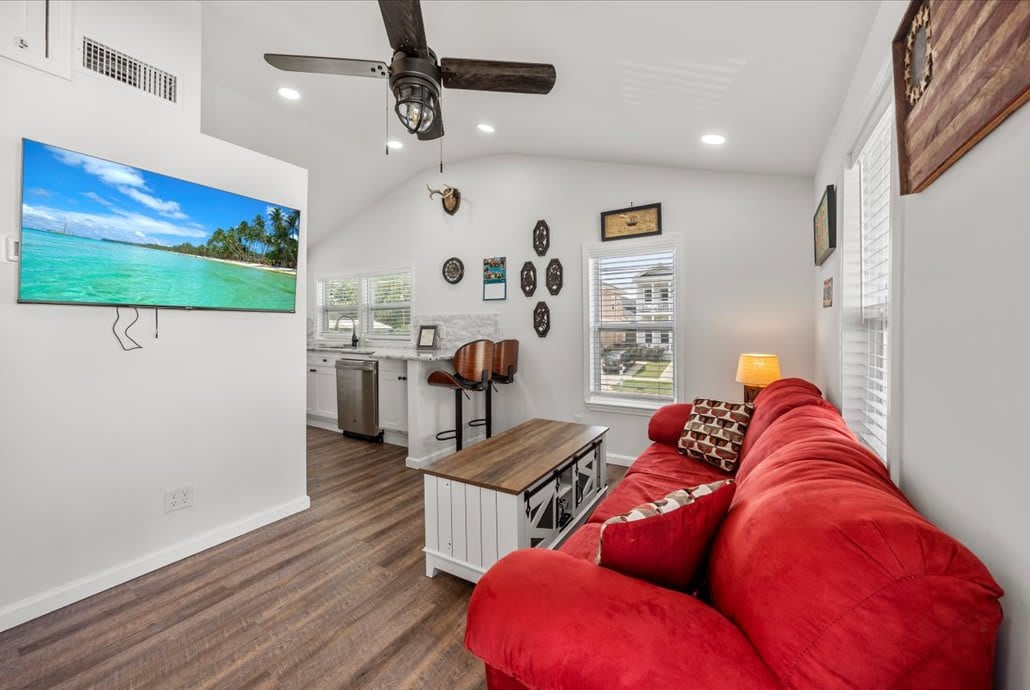 SHE 's, "Fun Cottage" se encuentra en la pintoresca y pintoresca zona del pueblo pesquero de Bon Secour, justo al norte de Gulf Shores, AL, y es ideal para una escapada en pareja. Está estrictamente configurado para una pareja de 25 años o más, además de que no se admiten niños. Este barrio tranquilo e histórico está cerca de todas las playas, tiendas y restaurantes. La recién construida "Fun Cottage" de 480 pies cuadrados tiene muchas características únicas para explorar y disfrutar. Ducha exterior y extras