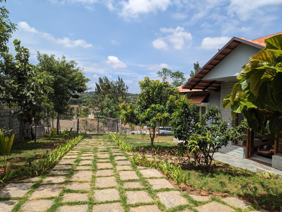 Escape to this charming weekend home, just 50 km from Bangalore. The 1300 sq.ft. retreat overlooks the serene mountains.Unwind under a jackfruit tree or in the hammock for stargazing, and gather around the fire pit. The one-bedroom home features a cozy reading corner, a living hall, a fully equipped kitchen, and a dining space. Embrace the village atmosphere with constant breezes and stay connected with 24-hour WiFi. Create unforgettable memories in this rustic haven amidst nature's embrace.