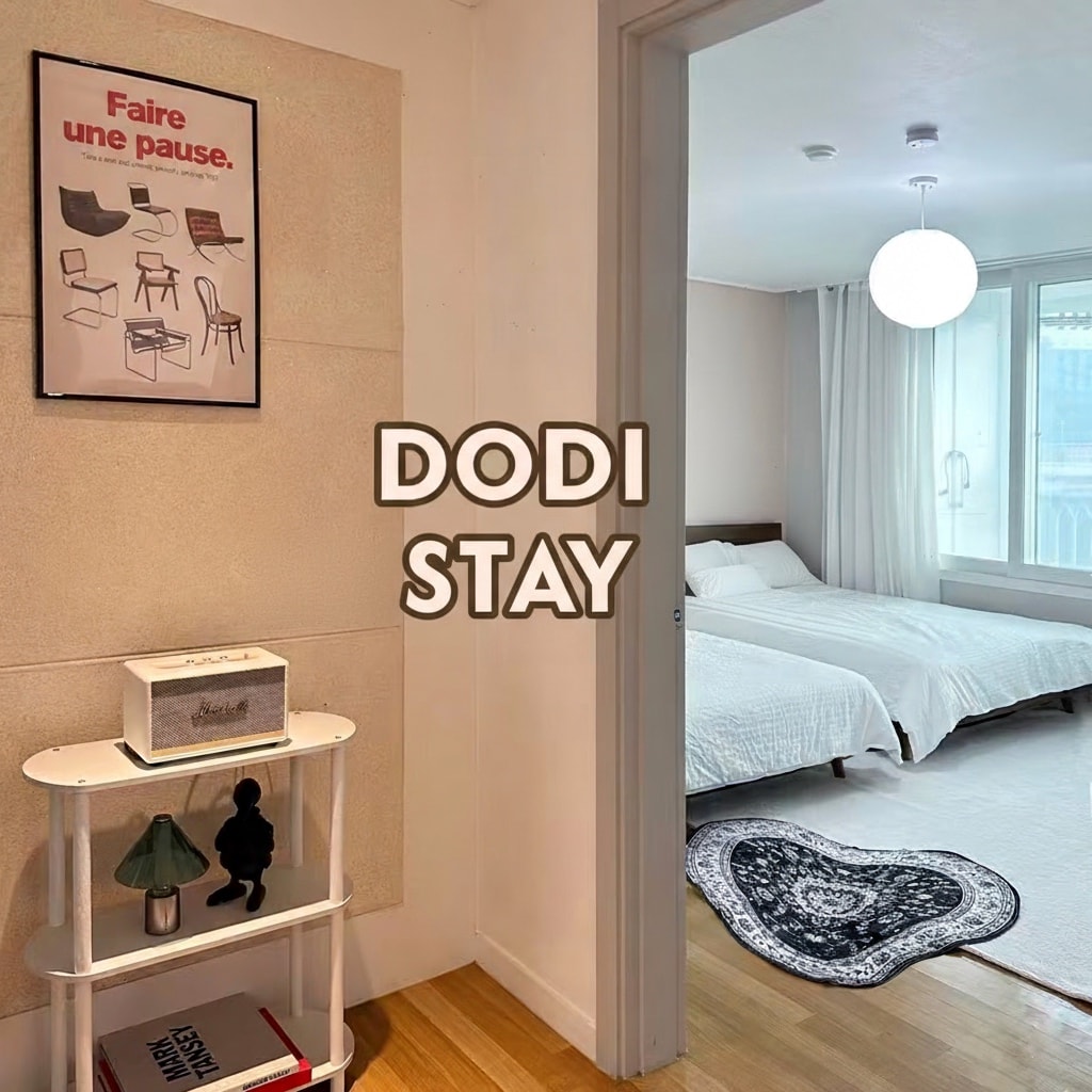 🌤 Welcome to Dodistay — a home where sunlight lingers. Located just east of Seoul in Guri, Perfect for group trips or family stays, this bright three-room apartment offers plenty of space to relax. Large windows fill the rooms with warm sunlight, a cozy and inviting atmosphere. The living room features a large leather sofa, 65-inch smart TV, and Marshall Bluetooth speaker for your comfort. With its elegant cream-toned interior, the space feels modern yet homely, accommodating up to 9 guests.