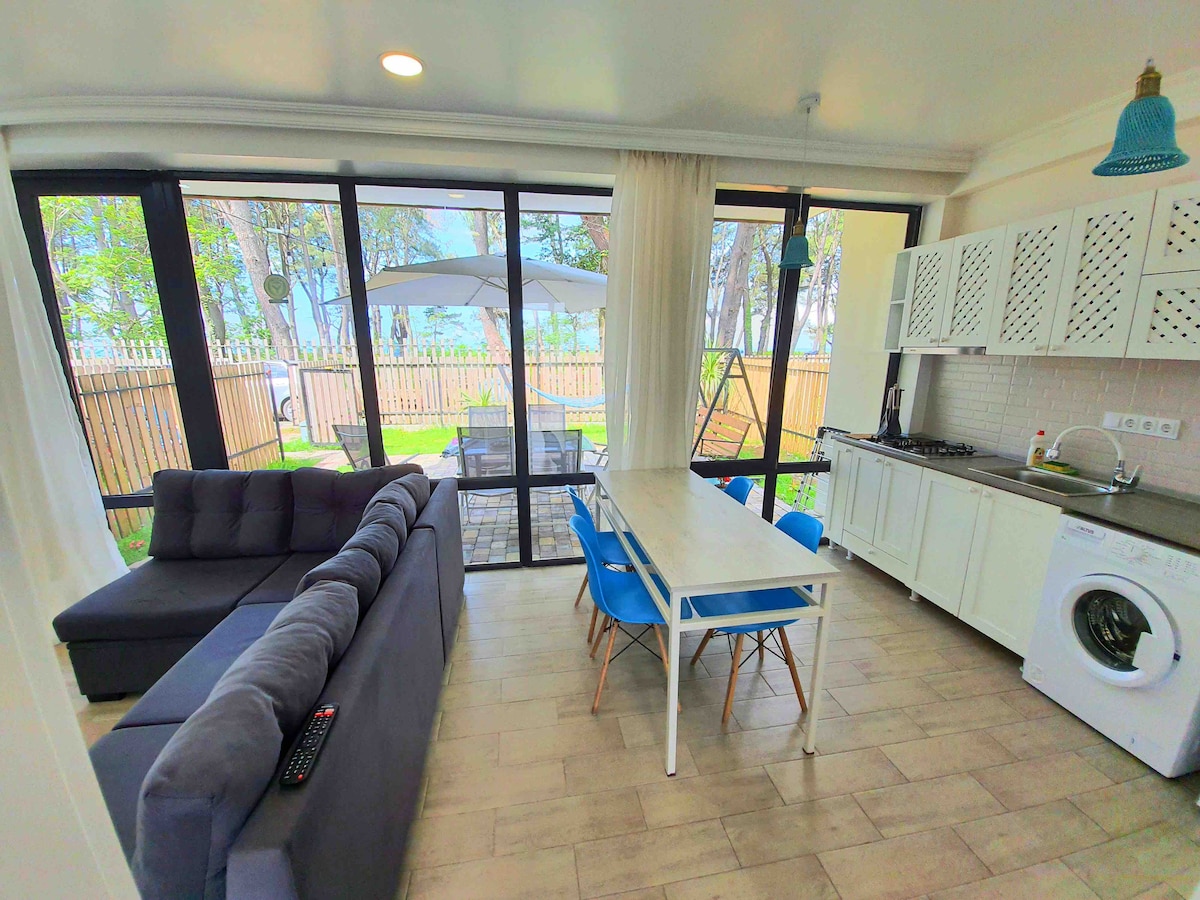 casa como se ve la limpieza y una buena renovación. Por la noche hay una brisa fresca del mar que trae olor de la playa cerca de la playa hay un bosque de pinos. La playa está muy limpia. Hay varios restaurantes y cafeterías cerca. Hay un buen supermercado. Después de 4-5 km. Hay un centro de entretenimiento "cicinatela" y también una sala de conciertos familiar "blacksiarena" donde se llevan a cabo conciertos...🌞🏖⛵️
