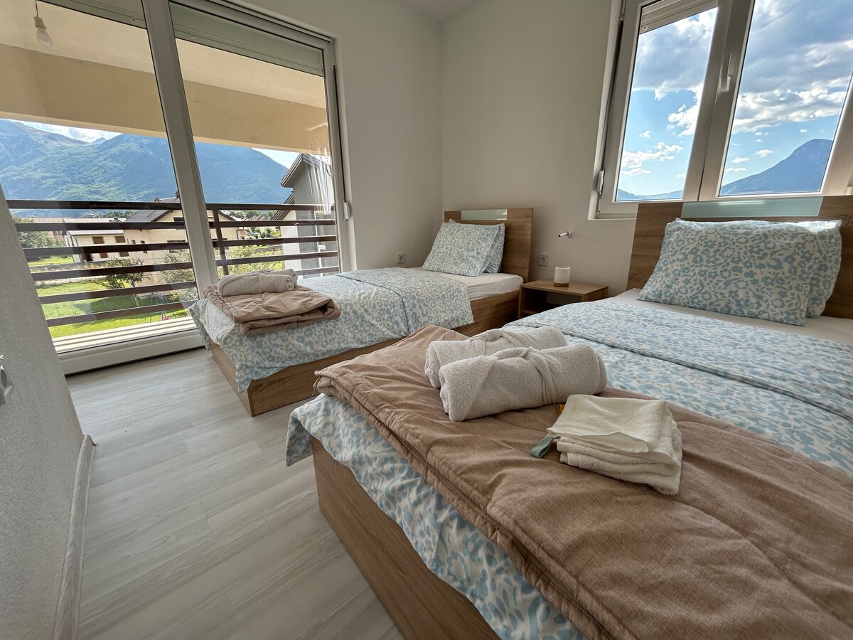Habitación con vista a la montaña y balcón - 3 camas y baño privado