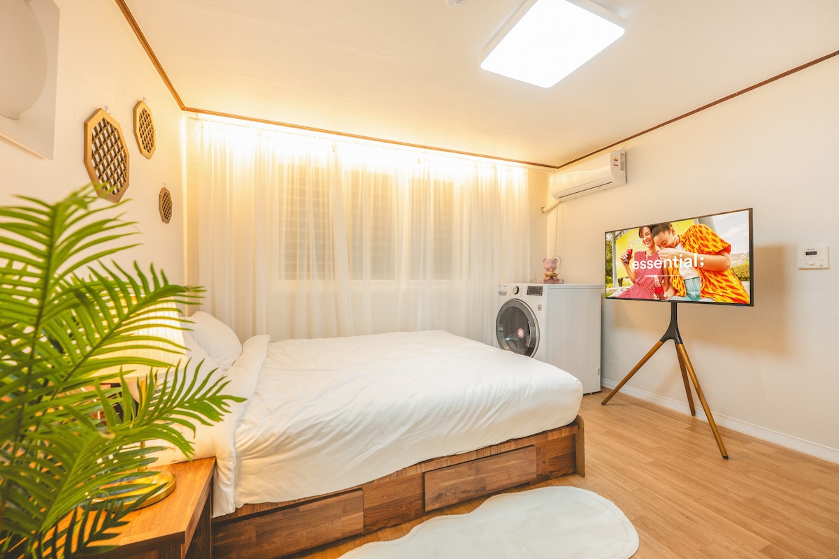- Maison de J 401호 - 3 habitaciones / 2 baños - 4 camas de una plaza, 1 sofá cama (hasta 5 personas). - 4 sistemas de aire acondicionado (sala de estar / dormitorio 1 / dormitorio 2 / dormitorio 3) - Consola de videojuegos arcade Brix / muchos juegos de mesa (Ver todas las imágenes -> Recorrido fotográfico -> Sala de juegos) - LG Stand by Me (servicios OTT como Netflix/YouTube) - Internet de alta velocidad/wifi 5G - Cafetera automática JURA - Lavarropas, secarropas, plancha, purificador de aire, parlante Bluetooth