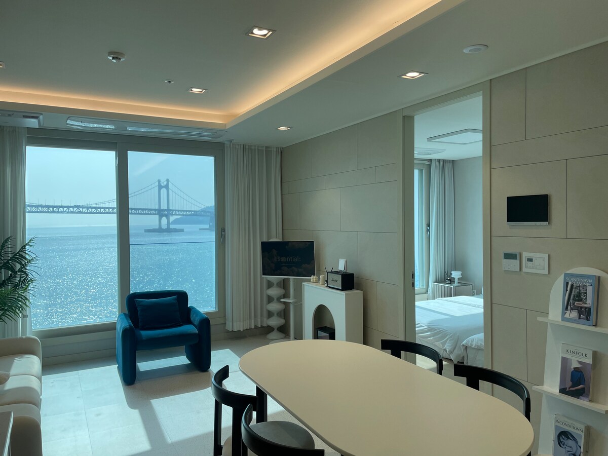 🌟숙소소개 ▪️초근접 광안대교를 볼 수 있는 환상적인 브릿지뷰입니다🌉💓 ▪️자체방역 실시하며 청결을 최우선적으로 합니다🧹😷 ▪️창밖으로 펼쳐진 힐링 오션뷰를 즐겨보세요🌊🍀 ▪️연인, 친구, 가족 모두 편안하게 지내실 수 있습니다(👫~👭👬) * 기본세팅 2인(최대 6인 가능) * 추가 침구류 3인 이상시 제공 * 침실2는 3인이상 예약 시 오픈됩니다. (**2인 예약시 침실1만 사용 가능하시고, 침실2 사용 불가하니 예약 시 착오없으시길 비랍니다. 유아는 카운팅 인원에서 제외됩니다**) ▪️생필품 구비 완료🧴🪥🧼 ▪️얼리체크인 불가합니다🥲 ▪️레이트 체크아웃 유료입니다(문의주세요☺️) ▪️숙소건물 자주식 무료주차장 이용가능 ❣숙소이용 포인트❣ ▪️반짝이는 윤슬✨을 바라보며 해돋이를 감상해 보아요🌅 ▪️매일밤 요트에서 터트리는 불꽃놀이를 즐길 수 있습니다🎇 감각적인 인테리어를 자랑하는 숙소를 200% 즐겨보세요(●'◡'●)❤️ 🛎이용시간 🕒 체크인: 15시 🕚 체크아웃: 11시