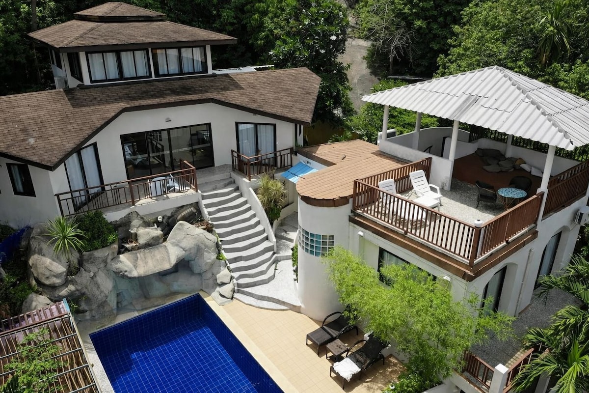 Unique Beachfront Jungle Mountainside 1 Bedroom Terrace Apartment Enjoy spectacular sunset views over Koh Samui and the Ang Thong Marine Park. Location ideal for the fit (owing to many stairs) and adventurous seeking nature and serenity. Set on the hillside nestled in the treetops above the beach Shared Beach and Pool, Kayak, BBQ Live music with dj on weekends until 11pm Free entry for guests Beach walk / kayak 10 minutes to nearest restaurant