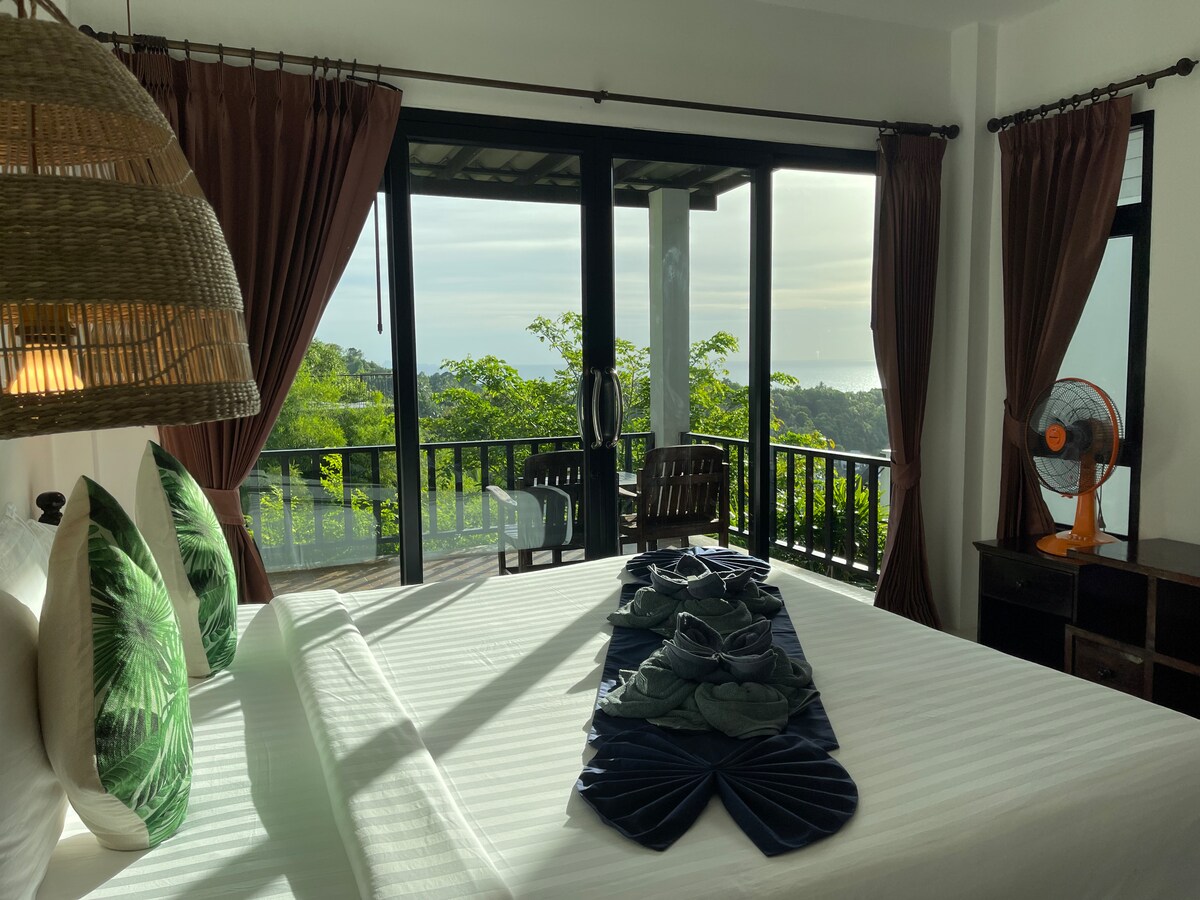 A beautifully put together 1 bedroom sea view home in the lovely village of Haad Salad. A beautiful space for a family, couple or for a solo traveler. Located 600 metres away from the white sands of Haad Salad beach. Coconut trees within metres from your balcony with a beautiful sea view and stunning nature view. This home is located on a wonderfully peaceful part of this island. I am happy to send you a special price for stays of a few weeks or more.