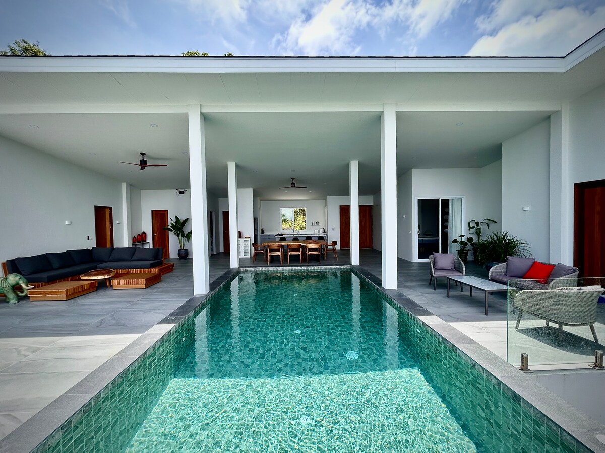 🏡 Elegante villa de 3 dormitorios 🚫sin FIESTAS🚫 🌊 con una piscina privada de agua salada 🌴 en Lush Garden 🚿 3 baños COMPLETOS Lugar de trabajo 💻 dedicado/segunda sala🤩 🛏 Capacidad para 6 personas en camas tamaño king/dos camas individuales + 2 adicionales en el sofá/cubrebocas Colchón y sábanas de calidad 💤 suave Zona 🛵 chic – Deli Devi y Coconut Lane 📸 Construido y decorado por un diseñador profesional 🏗️ No hay obras alrededor. Acceso a 🌅 la azotea, impresionantes vistas a las montañas 🚗 Estacionamiento privado 💎 Servicio de limpieza semanal de 5 estrellas (no incluye estadías largas)