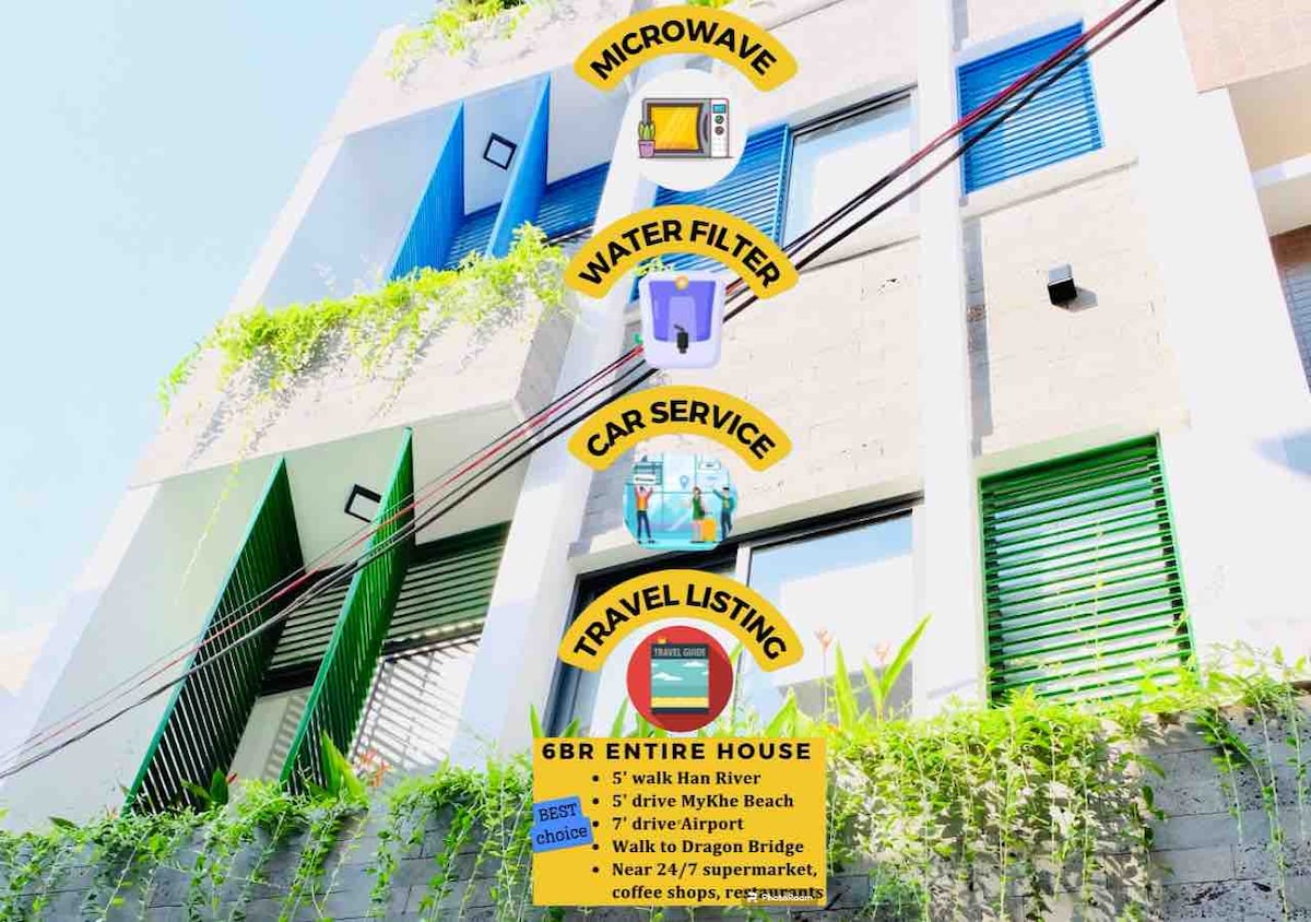 - un total de 4 dormitorios - Adecuado para 2 familias pequeñas/ grupo de 8 miembros. - 2 apartamentos separados en el segundo y tercer piso de una casa de vacaciones. - Todo el segundo y el tercer piso son privados para los huéspedes. - ubicación increíble: cerca del Puente del Dragón, a 5'en auto de la playa MYKHE, a 5' en auto del mercado de Han.