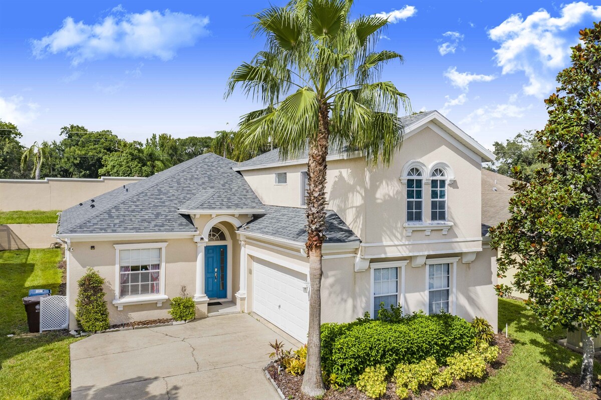 Casa de lujo de 4 dormitorios ubicada en una comunidad tranquila y cerrada a unas 15 millas de Disney World. El tiempo de viaje a Disney dependerá del tráfico, pero suele ser de entre 30 y 40 minutos. Totalmente amueblada con 2 suites principales con cama tamaño king, un dormitorio con cama queen y un dormitorio con 2 camas individuales. 3 baños completos. 5 televisores de alta definición, wifi de alta velocidad, llamadas telefónicas de larga distancia gratuitas a EE. UU., Canadá y Reino Unido. Piscina grande y spa. Gran sala de juegos con muchos juegos y actividades para niños de todas las edades.