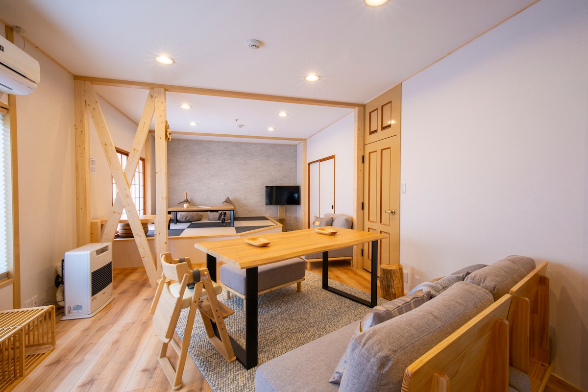 A 20 minutos a pie de la estación de Aomori, a 9 minutos en auto de la estación de Shin-Aomori.A 6 minutos a pie de las instalaciones de aguas termales de 70 años con un manantial que fluye a través de ellas.El lugar donde se celebra el Festival Nebuta también está a pocos pasos, por lo que es una ubicación conveniente para hacer turismo y relajarse.El minimercado también está a 5 minutos a pie, lo que lo hace extremadamente conveniente para la vida diaria.Este espacioso alojamiento privado tiene capacidad para entre 8 y 10 personas, por lo que es ideal para viajes familiares de 2 familias o viajes en grupo con amigos.También hay una habitación para niños, para que las familias con niños pequeños puedan usarla con total tranquilidad.La naturaleza de la temporada también es encantadora, con el Festival Nebuta en verano, el senderismo con follaje otoñal en otoño, el esquí y el snowboard en invierno y los cerezos en flor en primavera.En Aomori, donde el agua y el aire son limpios, podés disfrutar de deliciosos ingredientes y de la cocina local.Disfrutá del encanto de Aomori a tu antojo, junto con una estadía cómoda.