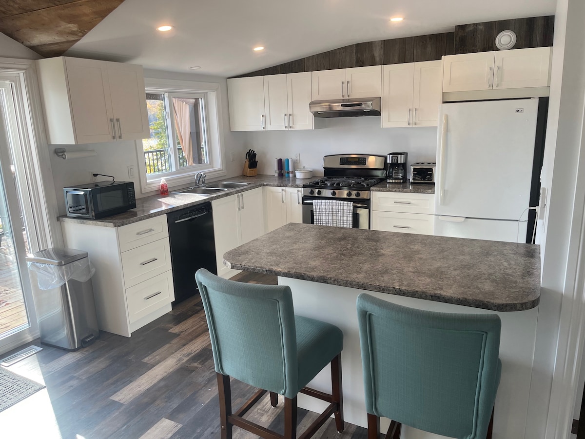 The Black Diamond Lodge is a newly curated four season haven for all! Located in the Peaks Village, a quick two minute drive to Calabogie Peaks Ski Hill or ski out the front door to the Madawaska Nordic Ski & Recreation Trails. Views of the peaks can be seen from the family room & hot tub. Snuggle up by the indoor wood burning fireplace and unwind before your next adventure! **Special Fall Promotions Live**