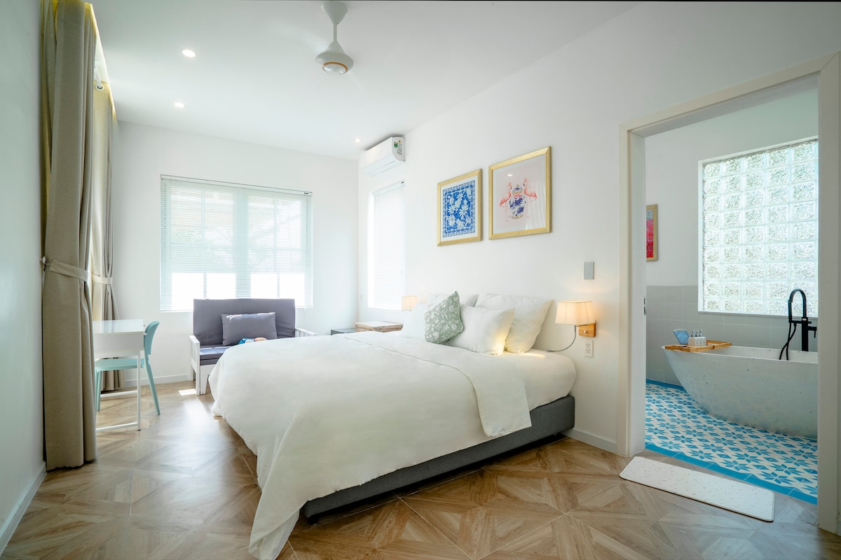 Cozy room with one bedroom and an amazing garden view for a couple or family. We offer great service that makes your trip wonderful such as: - Breakfast is provided at no cost. - A large garden view with a pleasant atmosphere - Swimming pool - Nature-inspired bathroom - Fantastic outdoor BBQ area - A nearly stunning beachfront outdoor bar - Only 5 minutes to get to the beach.