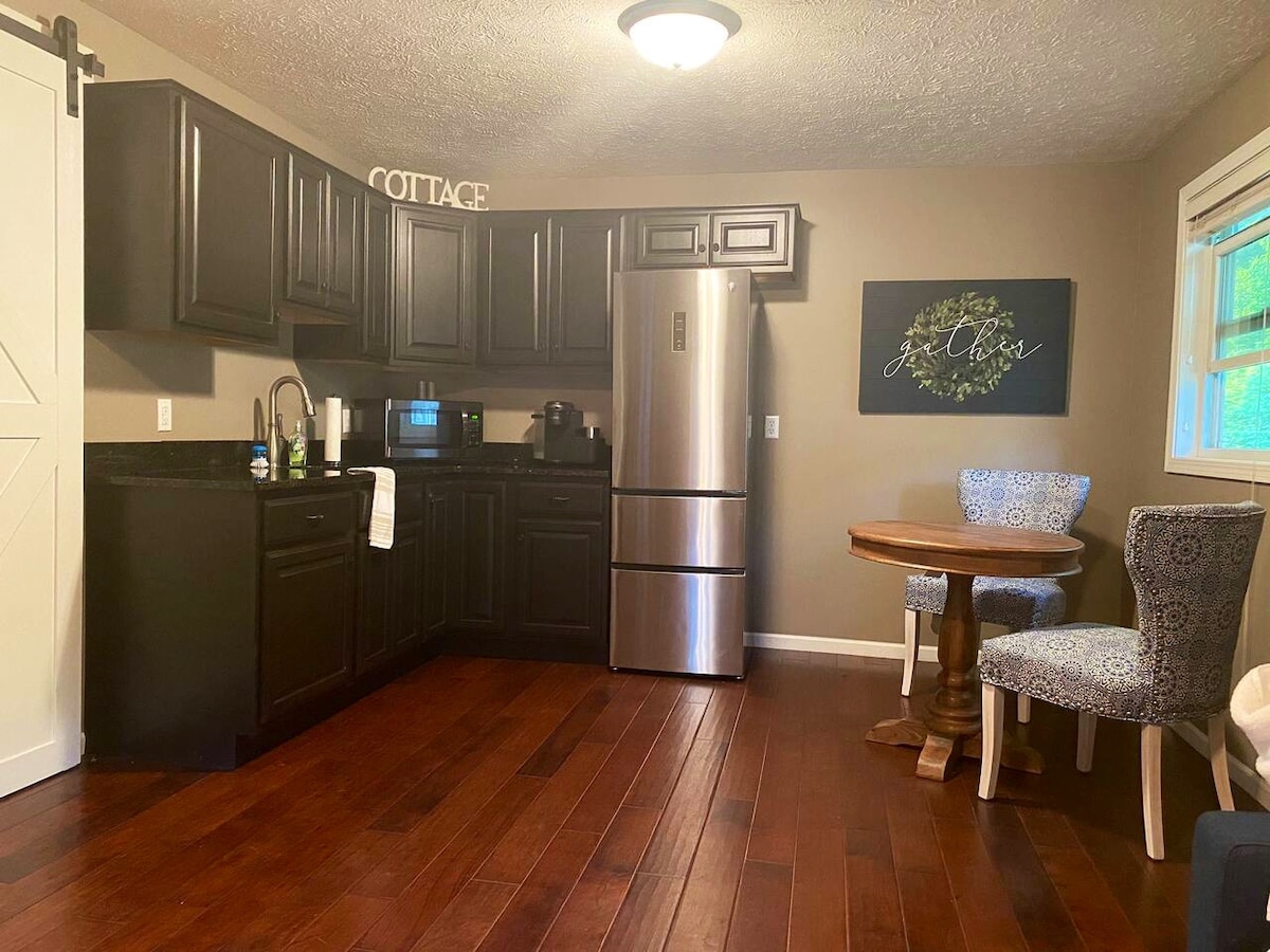 Relájate y desconecta en esta casita tranquila y elegante. ¡Todo nuevo! Estudio totalmente amueblado con capacidad para 4 huéspedes. Cama tamaño king, sofá cama tamaño queen, cocina completa, ducha a ras de suelo, lavandería con tu propia terraza privada en la parte trasera.