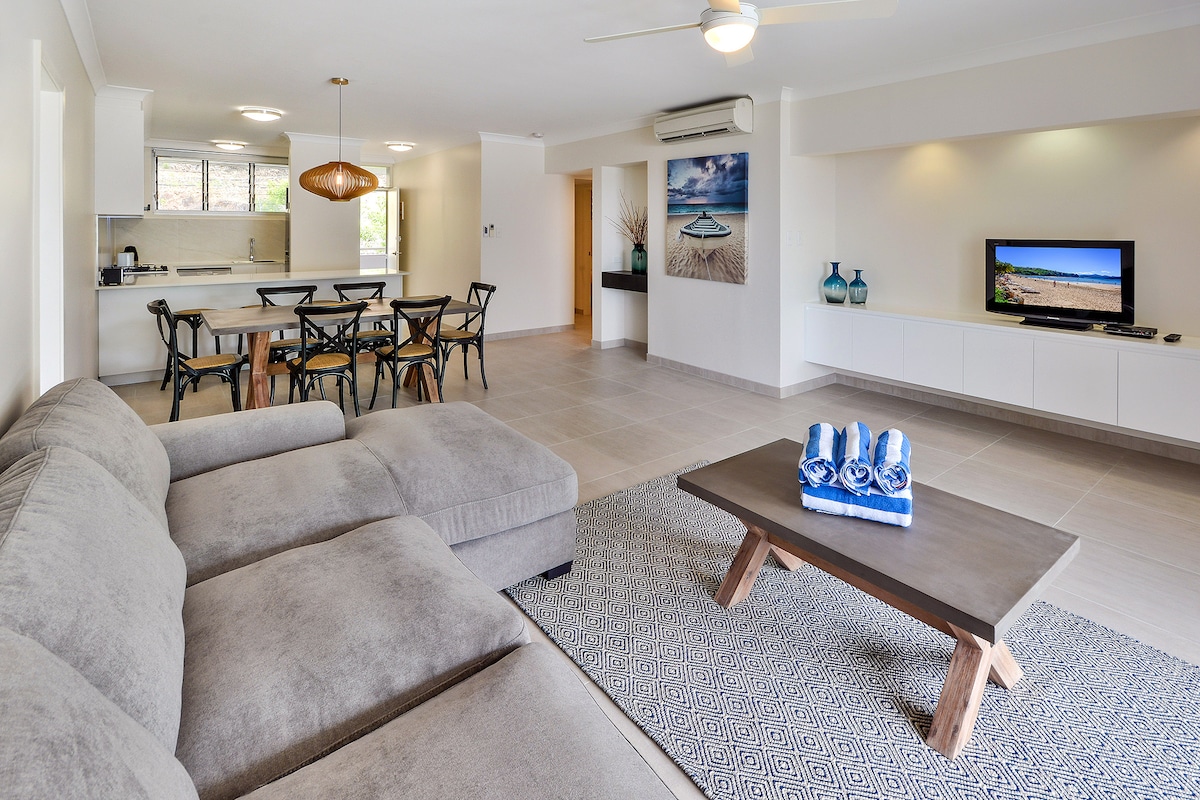 Compass Point 1 is a fully renovated (in Aug 2023) one-bedroom, top floor apartment with spectacular views of Whitsunday Passage and Henning and Whitsunday Islands. Guests will enjoy magnificent sunsets from the large balcony, complete with electric Weber BBQ and outdoor setting. Unlimited free Wi-Fi, Netflix (on both main TV and bedroom TV) and Foxtel (with sports) on main TV. Plus, the use of a 4-seat electric buggy for of your stay (note drivers need to have a standard driver's licence).