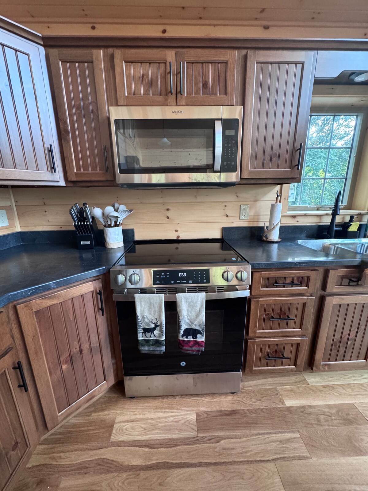 Sit for a spell around the campfire or catch your breath on the deck, we’re sure you’ll fall in love. Located on the top of the mountain, you'll have beautiful views of sunrise and sunset. We have a peaceful location where you can bird watch and see wildlife and Mother Nature in her glory. There is a beach at the swimming pond and a stocked fishing pond available to use so bring your beach chair and fishing gear.
