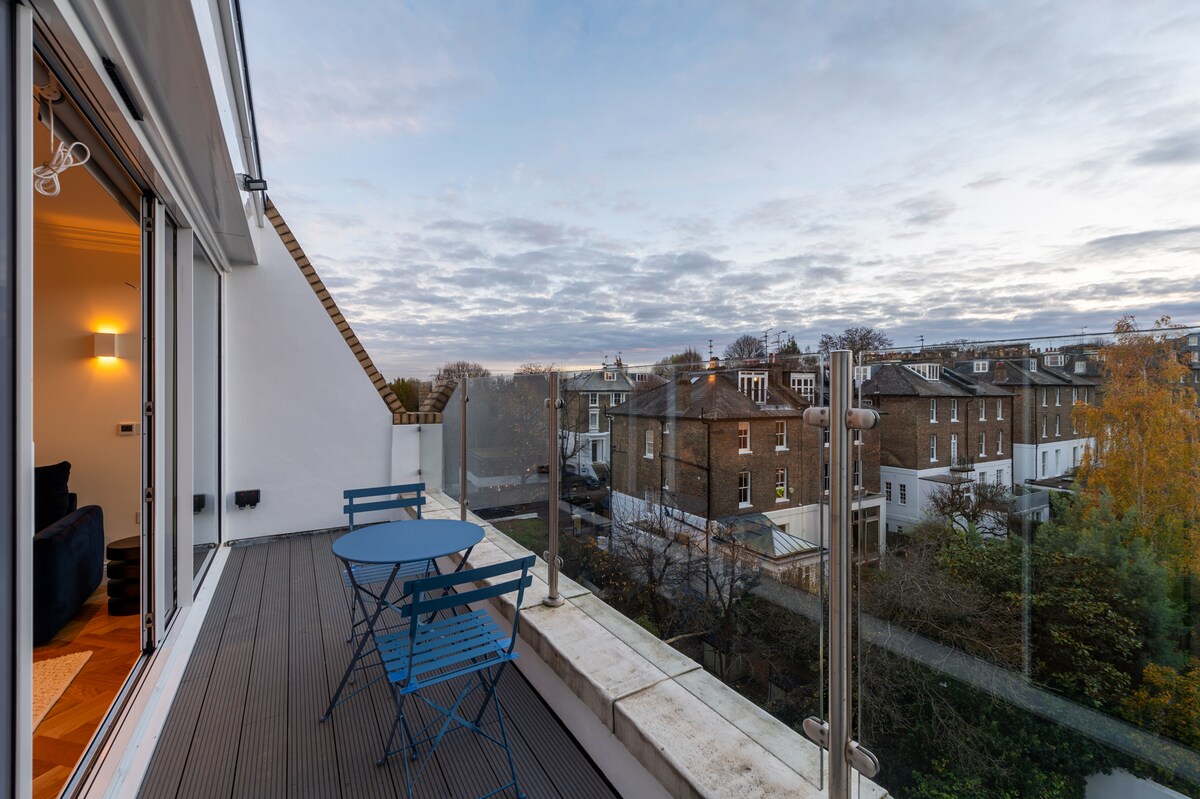 This beautiful character apartment is located in the charming Highgate Village on Hampstead Lane, with high ceilings, natural light, & within walking distance from Hampstead Heath, gastro pubs, cute shops and beautiful streets. Less than 4 miles away from Oxford Circus & offers peaceful surroundings, with the sound of birds waking you up in the morning. The outdoor south facing terrace overlooks leafy garden views & has been recently refurbished to a high standard.