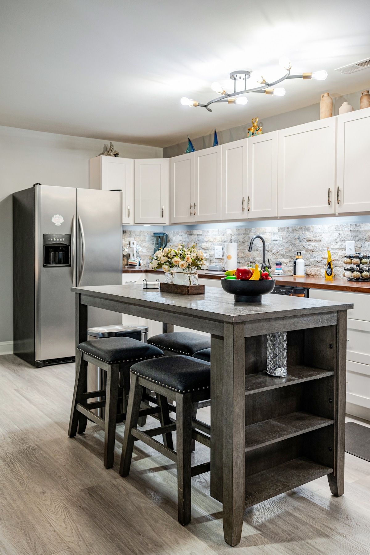 El Retiro no es solo una «casa», es un destino que ofrece a nuestros huéspedes el lugar perfecto para reunirse con sus amigos y familiares y pasar un rato increíble sin salir de casa. Cuando Jeff y yo diseñamos esta casa queríamos crear algo único, algo que reflejara lo mucho que disfrutamos de la vida y pasar tiempo con nuestros seres queridos. Hemos creado muchos recuerdos especiales en nuestra «casa de fantasía» y ahora que nuestros «nidos están vacíos» ¡tenemos el honor de compartirla contigo!