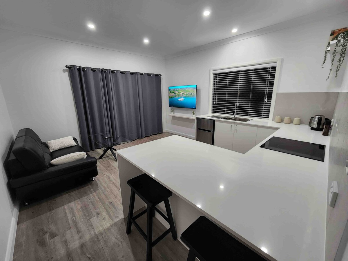 Located on 5 acres this beautifully renovated separate studio has all the comforts of home. Modern fully equipped kitchen, laundry and bathroom, with unlimited wifi and pet friendly. A 1000 sq. mtr. gated and fenced off-leash area is available for your fur baby to enjoy the stay. A small charge applies to hosting your fur baby. Undercover parking. A complimentary breakfast basket is available on your first day. Please note there are no EV charging facilities available on site.