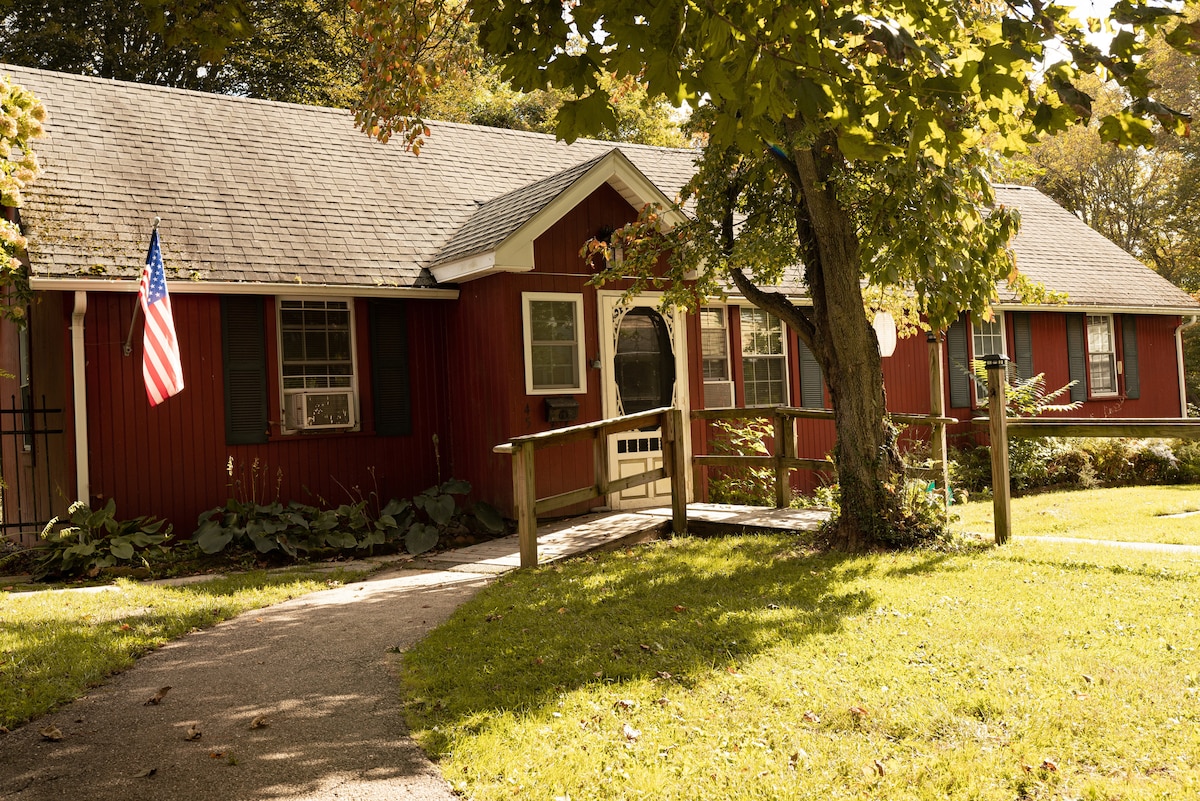 Welcome to our cozy apartment! This fully enclosed apartment is attached to our main house on a beautiful 3.5-acre property in Brookfield. Enjoy a kitchen, comfortable living and bedroom area, and a clean bathroom. Guests have access to a shared 32 ft, 10 ft deep pool, artist studio, pool table,, garden, fire space, and outdoor seating. We provide a guidebook for your convenience. Book now and experience a perfect blend of comfort, creativity, and relaxation.