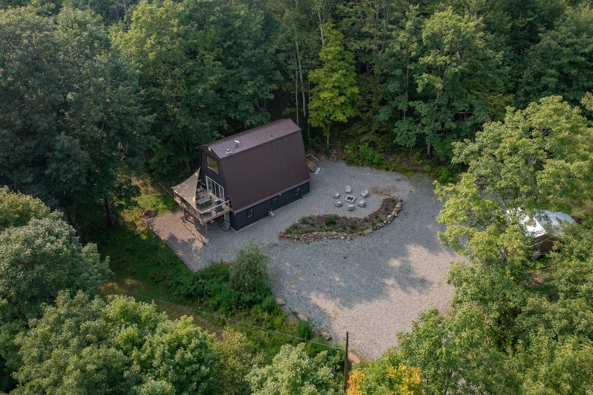 Bienvenido a nuestra moderna cabaña inspirada en las casas del árbol con vistas a The Kenfield Brook en Terrill Gorge. Estamos ubicados a 5 millas de Stowe y sus atracciones, y a solo unos minutos del centro de Morrrisville con todos sus servicios. Justo aguas arriba del pintoresco pozo de natación de Cady's Fall y al otro lado del arroyo de los increíbles senderos para bicicletas de Cady's Falls, nuestra cabaña está encaramada en la cima de la ladera. Con su diseño sencillo y minimalista, es fácil sumergirse en la naturaleza y sentirse como en casa en los árboles.