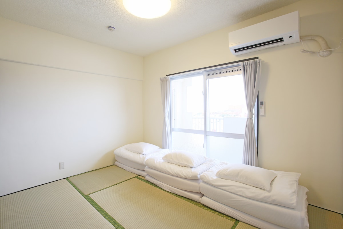 港の目の前に建つ、アパートの2階にある一室です。 南向きの角部屋で、室内から港の景色を望めます。 室内には、ドラム式全自動洗濯乾燥機、ウォシュレット付きトイレ、グリル付き2口ガスコンロのキッチン、シャワールームを備えており、長期滞在にも対応しています。 Chromecast対応・Wi-Fi完備。各種動画配信サービスをご自身のアカウントでご利用いただけます。 オートロック付きの建物のため、外出時も安心してお過ごしいただけます。 生活に必要な備品は揃っており、滞在中のストレスを感じにくい環境です。 繁華街までは徒歩約10分。レンタカーがなくても比較的移動しやすく、無料の自転車を1台ご用意しています。 お車でお越しの場合は、徒歩3分以内の近隣フリースペースをご案内いたします。 ※有料で、アパートから徒歩10秒ほどの場所にある駐車場もご案内可能です。空き状況によりご案内できない場合がございますので、事前にお問い合わせください。 ご宿泊は1名様を推奨していますが、追加料金にて2名様まで対応可能です。 2名様でご利用の場合は、敷布団1組をご用意しますので、必ずご予約時にお知らせください。